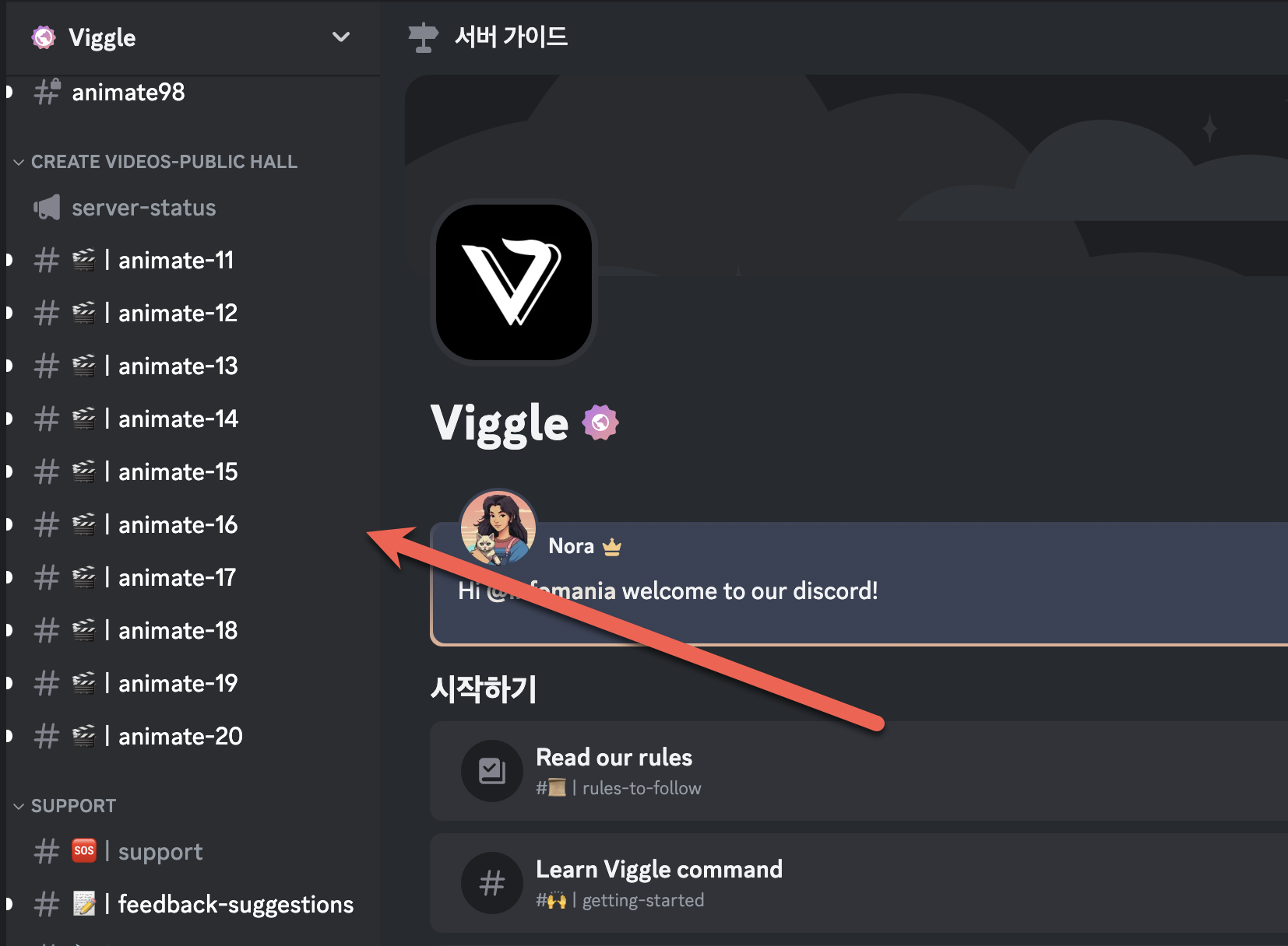 채널에 입장하고나면 왼쪽에 서버들이 줄줄이 있습니다. animate 서버 중에 하나를 선택해서 들어가 주시면 됩니다. 웬만하면 사람이 없는 채널에 들어가는 것이 좋습니다.