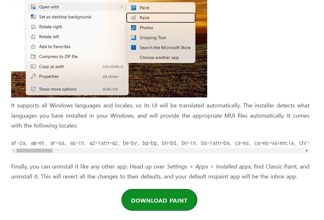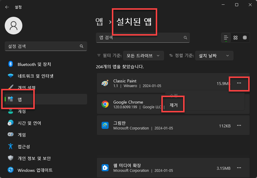 삭제하실 때에는 윈도우 설정의 앱에서 설치된 앱 메뉴에서 Classic Paint를 제거해주시고 위 과정 "앱 실행 별칭" 메뉴를 원래 상태로 복원해 주시면 됩니다.