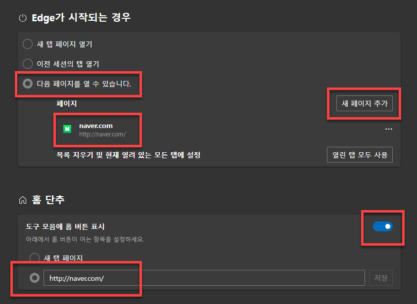 엣지 브라우저 네이버 시작 페이지 설정 방법