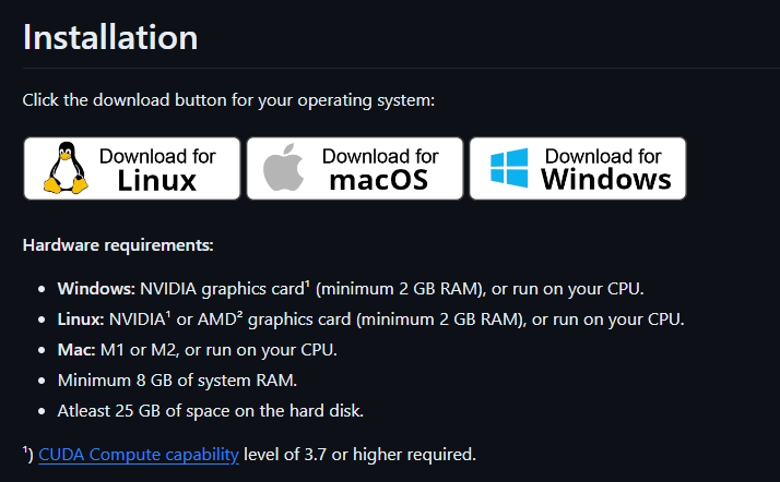 먼저 Easy Diffusion을 다운로드 해줍니다. 지원하는 운영체제는 Linux, MacOS, Windows를 지원하기 때문에 아마 대부분의 경우 사용이 가능하실 겁니다.