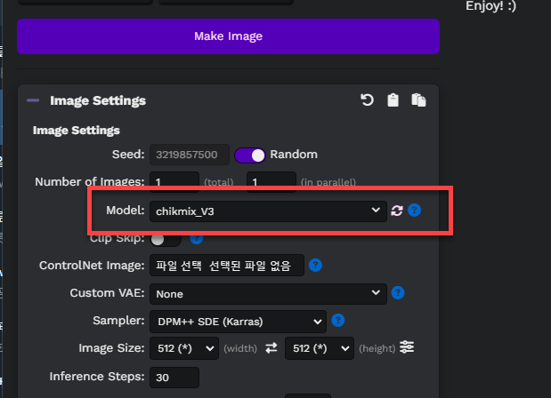 폴더에 모델을 넣어 주신 다음 Image Settings 부분에 모델을 선택해 주시면 사용이 가능합니다.