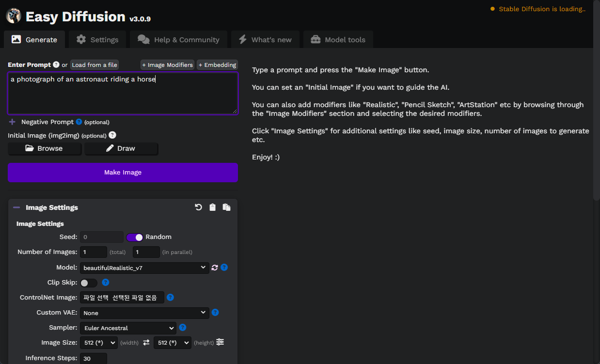 AI 이미지 생성 프로그램 Easy Diffusion 사용 방법