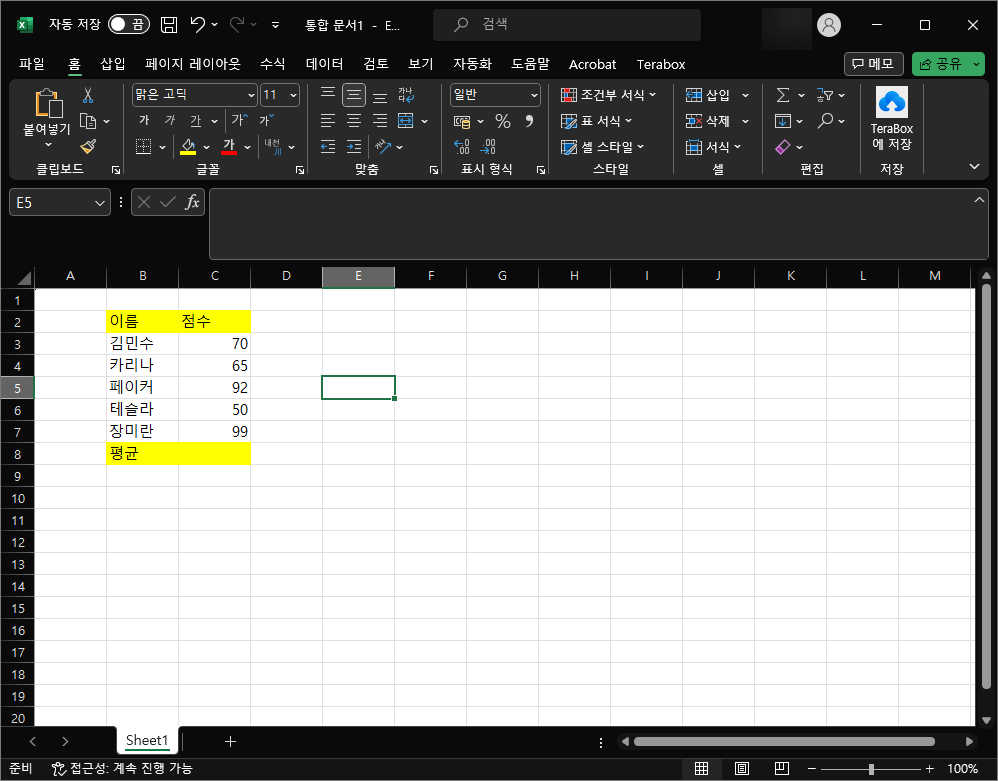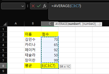 범위 부분은 평균을 낼 점수들을 선택해주시면 됩니다.