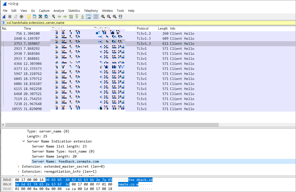 와이어샤크 ServerName 확인 방법