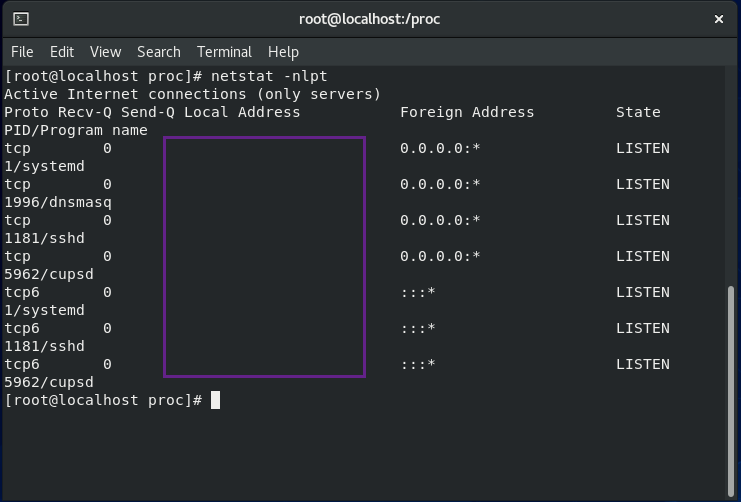TCP listening 상태의 포트와 프로그램을 보여준다