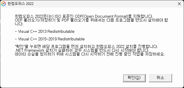 한컴오피스 한글 설치 오류 .NET Framework 재설치 방법