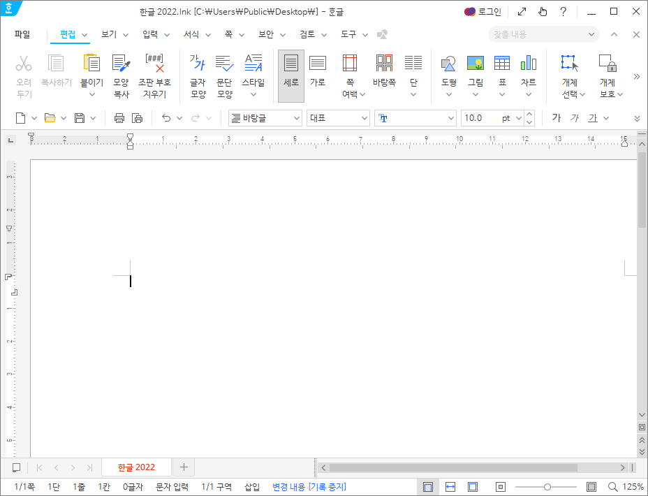 이제 한글이 정상적으로 실행되었습니다.
