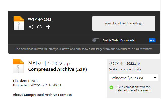 먼저 한컴 오피스 2022 zip 파일을 다운로드 해줍니다.