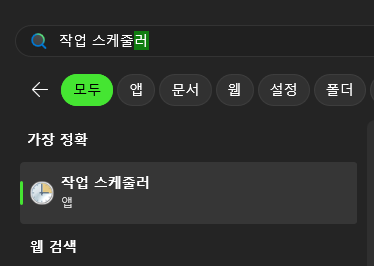 윈도우 검색에서 [작업 스케줄러]를 검색해서 앱을 열어줍니다. 기본 앱이기 때문에 설치를 하지 않으셨더라도 가지고 있으실 겁니다.