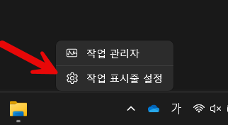 작업 표시줄에서 마우스 우클릭을 하시면 설정으로 들어갈 수 있습니다.