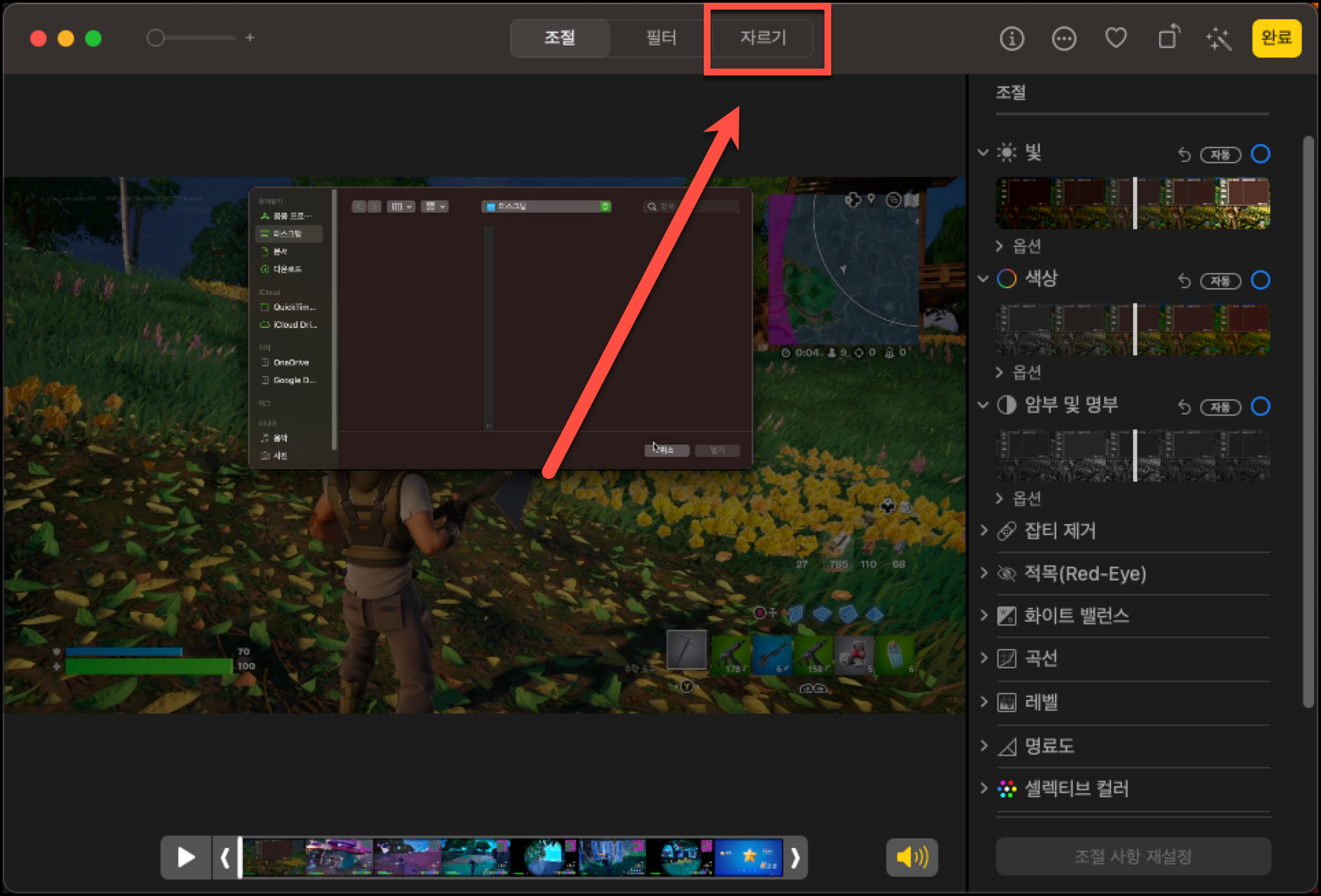 [자르기] 메뉴를 클릭해줍니다.