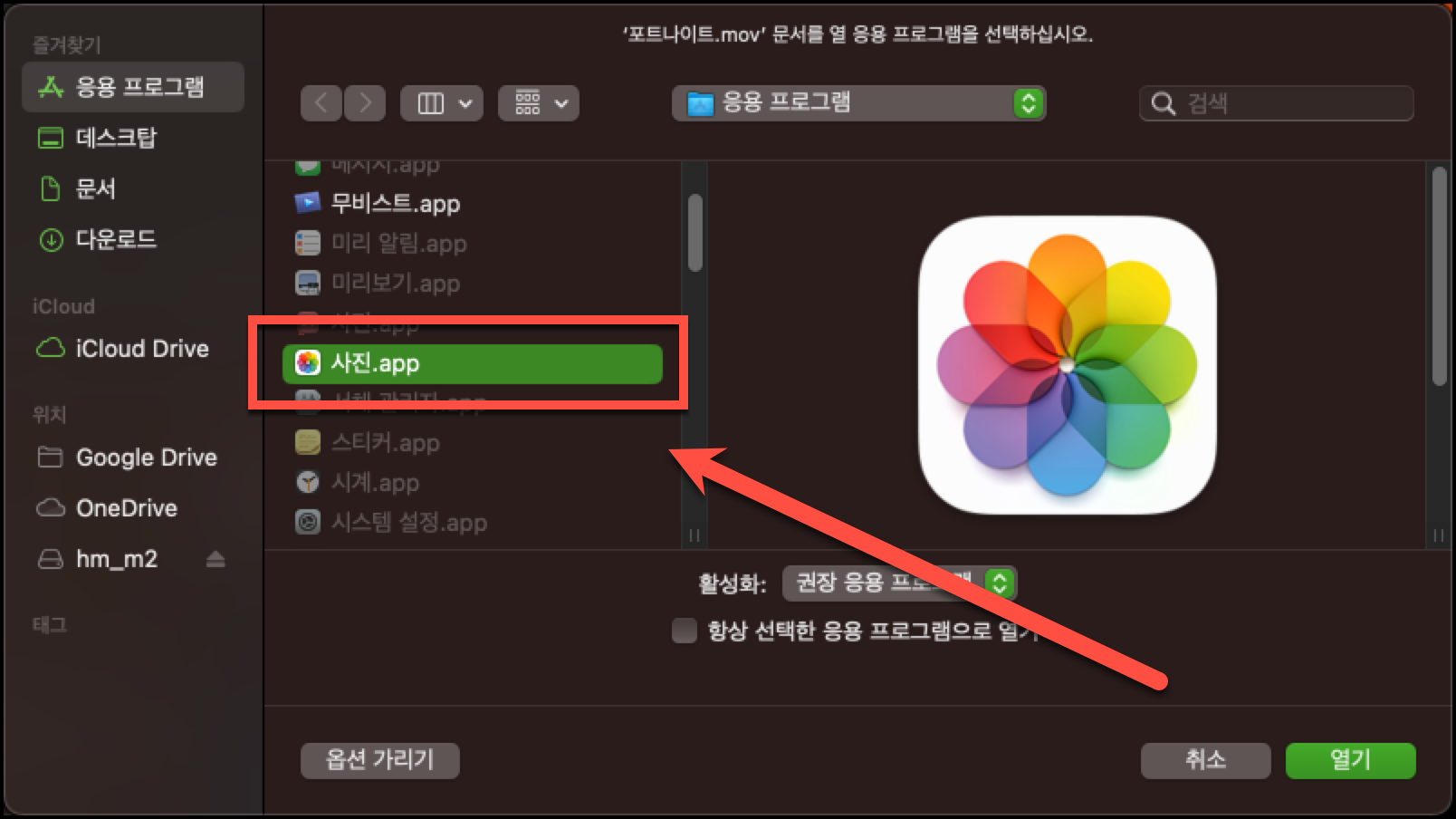 응용 프로그램, Application 에서 사진.app 을 선택해서 열어줍니다.
