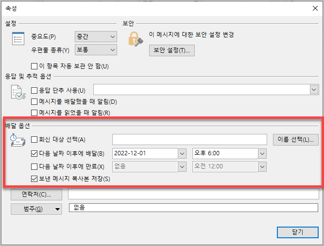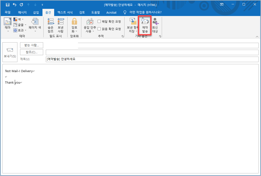 [Outlook] 아웃룩 특정 시간 날짜 메일 예약발송 방법