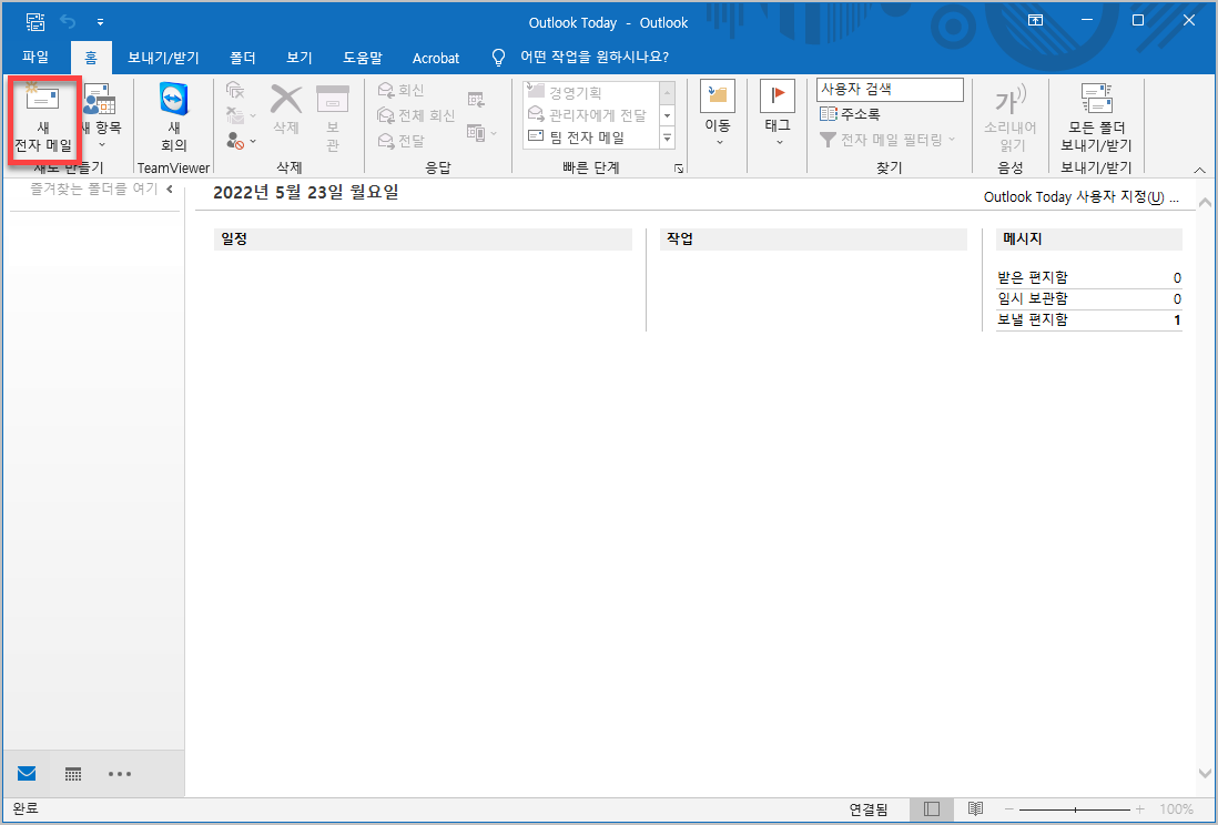 아웃룩 프로그램을 열어서 [새 전자 메일] 을 클릭합니다.
