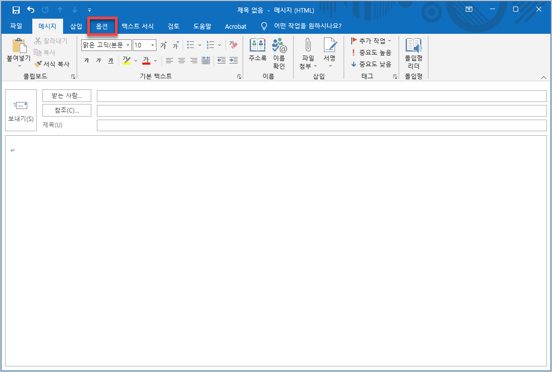 새로운 메시지에서 [옵션] 을 선택합니다.