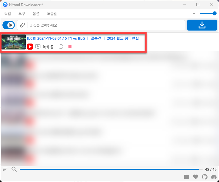 그리고 히토미 다운로더에 붙여넣은 후 다운로드 버튼만 클릭해 주시면 바로 녹화가 가능합니다.