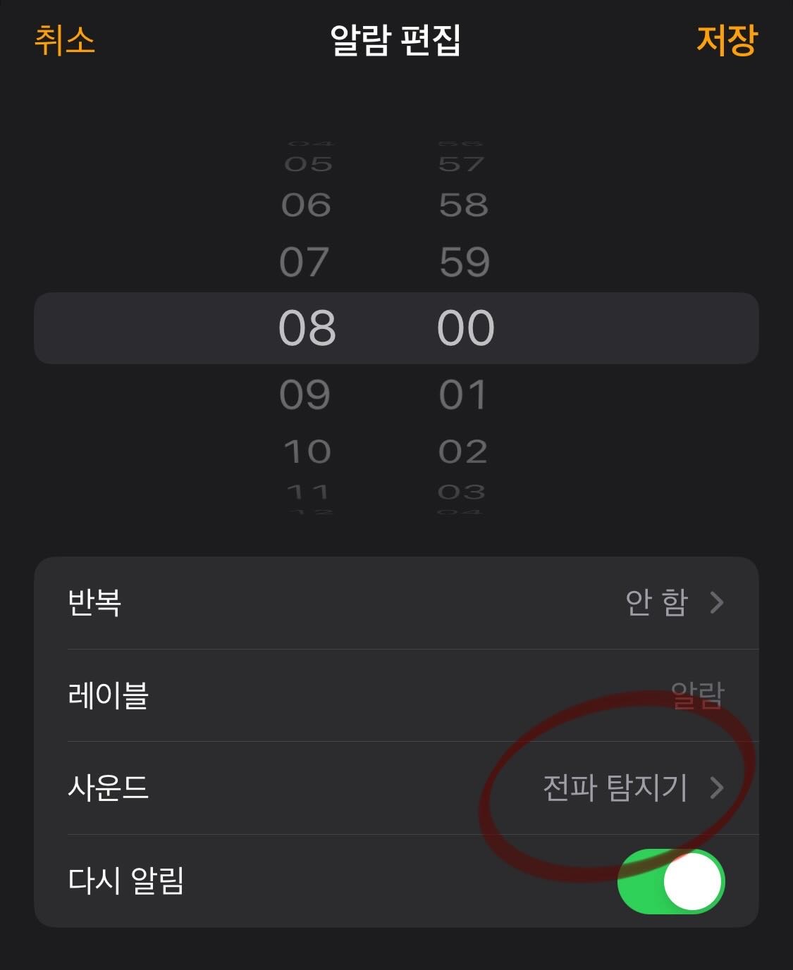 기본 알람 사운드가 아마도 전파 탐지기일 겁니다. 자주 듣다보면 이제 지겨워서 더 이상 듣기가 싫어질 겁니다.