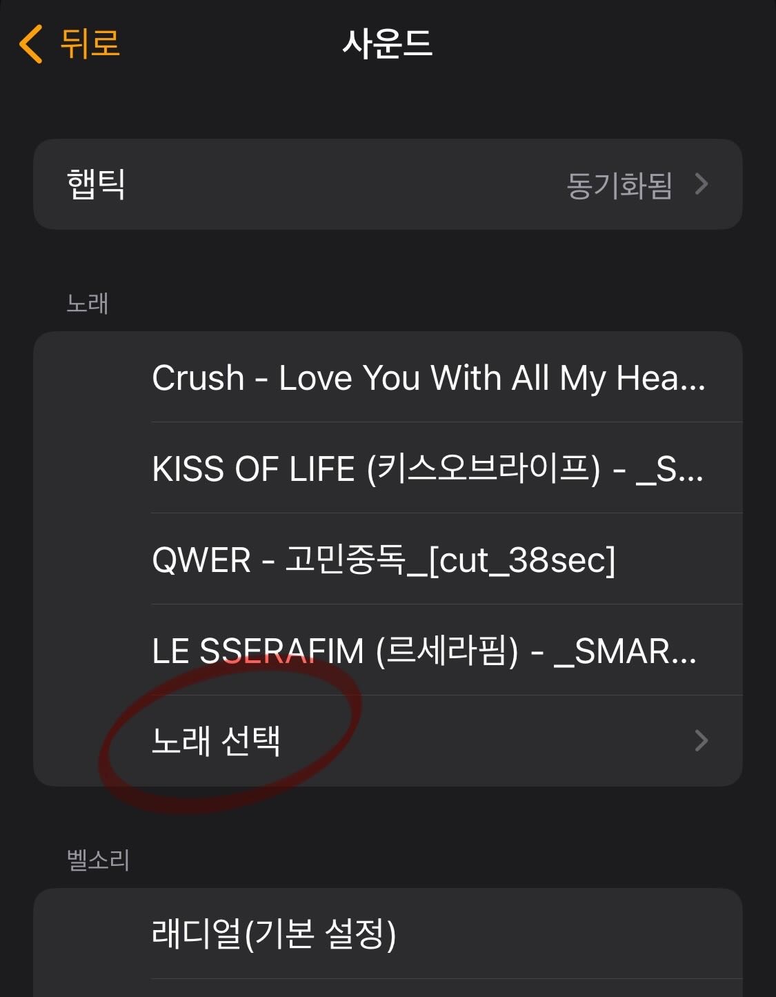 이렇게 설정을 하기 위해서는 PC에 아이폰을 연결하고 아이튠즈를 통해서 노래를 넣어줘야 합니다.