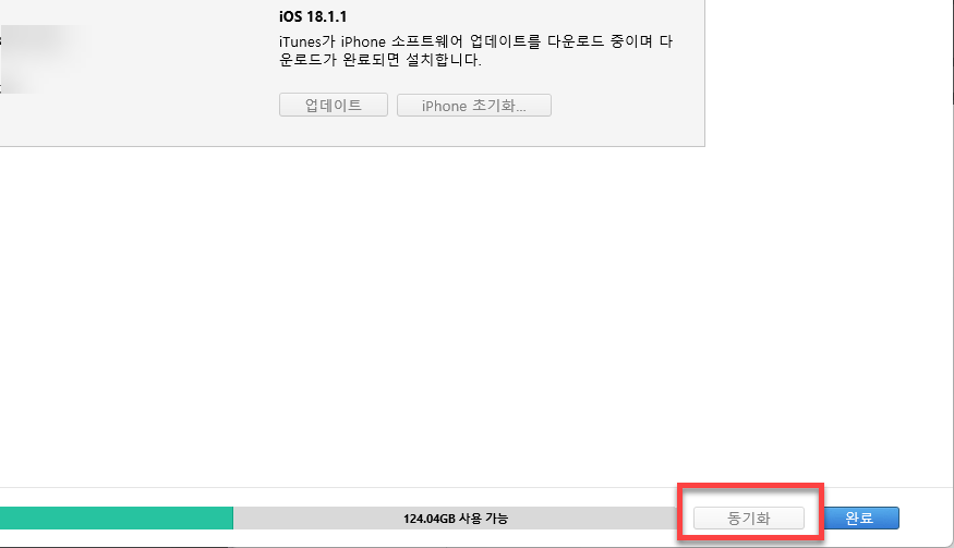 아래에 있는 동기화 버튼을 클릭하시면 음악이 동기화 되면서 아이폰으로 노래가 들어가게 됩니다.