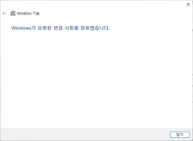 조금 기다려 보시면 Windows가 요청된 변경 사항을 완료했습니다. 메시지가 나타납니다.