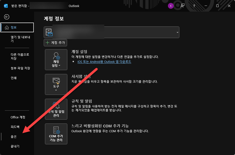 아래쪽에 [옵션] 메뉴가 있습니다. 클릭해 줍니다.