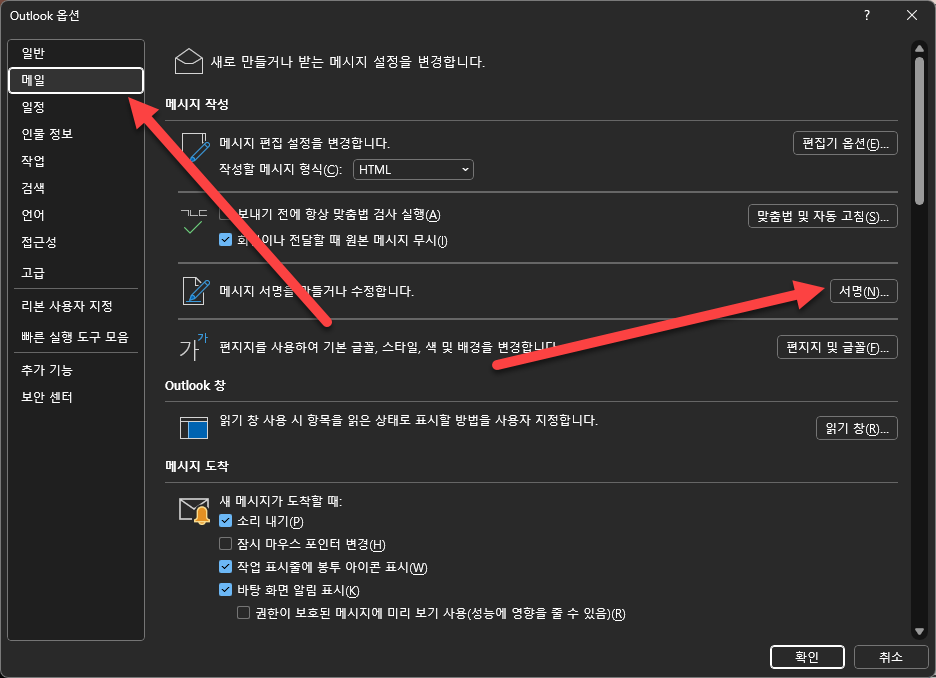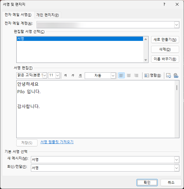 [Outlook] 아웃룩 메일 서식, 서명 만드는 방법
