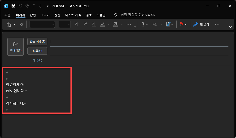 안녕하세요로 시작해서 감사합니다.로 끝나는 서식을 만들어 보도록 하겠습니다.