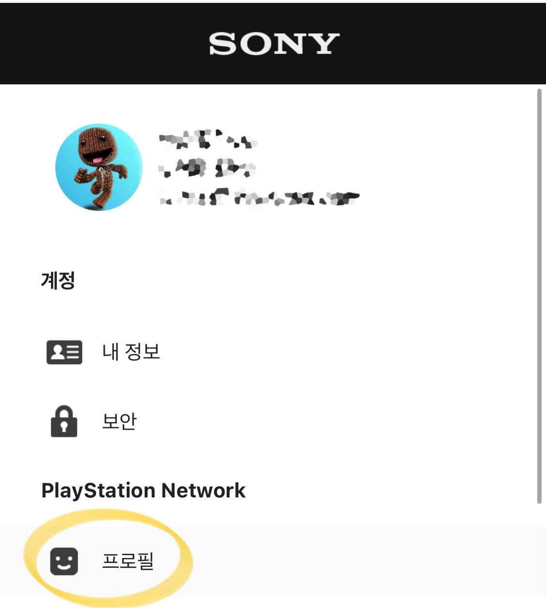 내 프로필에서 Playstation Network 부분에 프로필로 들어가 줍니다.