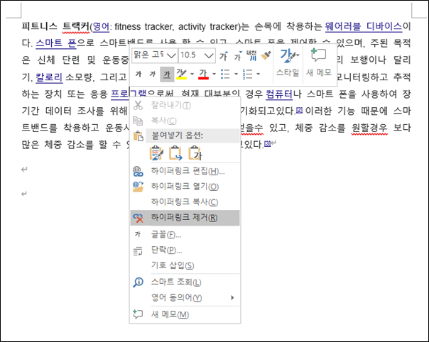 복사, 붙여넣기 할 때 하이퍼링크 지우기