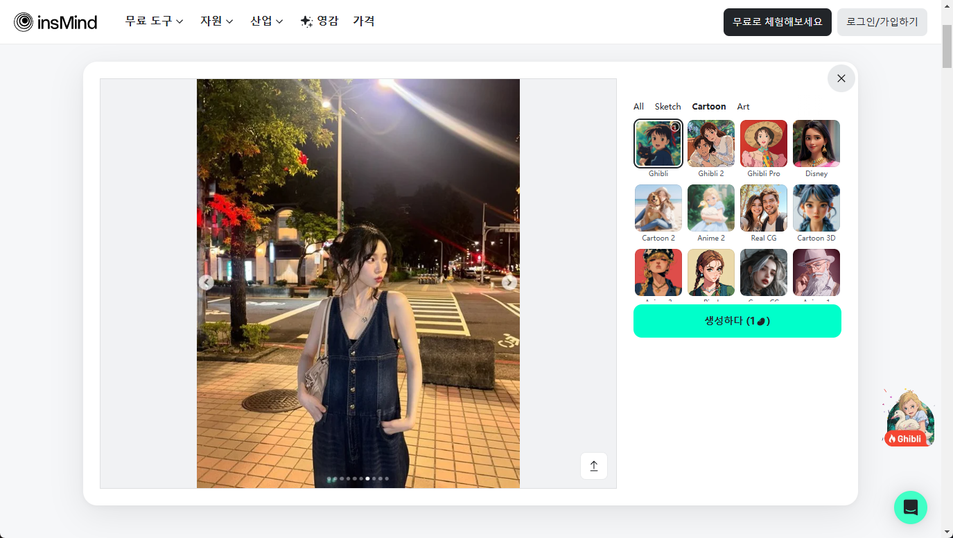 사이트 바로가기 : https://www.insmind.com/ko/studio-ghibli-filter/