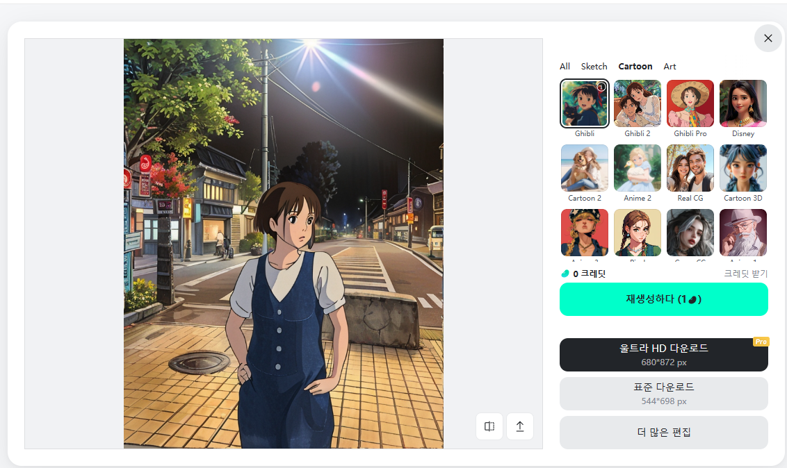 확실히 지브리 스타일로 바꿔준 것을 볼 수 있습니다.