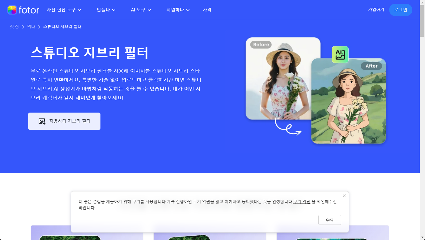 지브리 필터 사이트 사용 방법: 내 사진을 애니메이션처럼 변신시키기