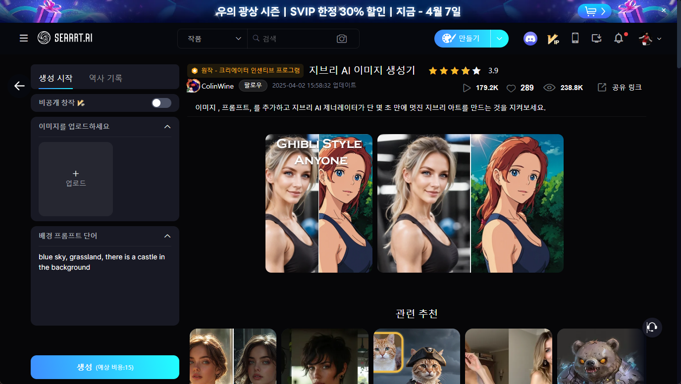 사이트 바로가기 : https://www.seaart.ai/ko/