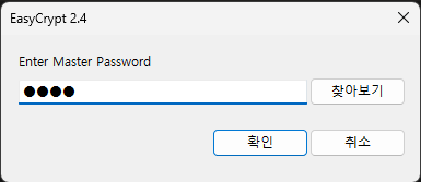 EasyCrypt가 실행이 되는데, 여기에 암호화를 해제할 때 사용할 Master Password를 입력해 주신 후 확인을 클릭해 주시면