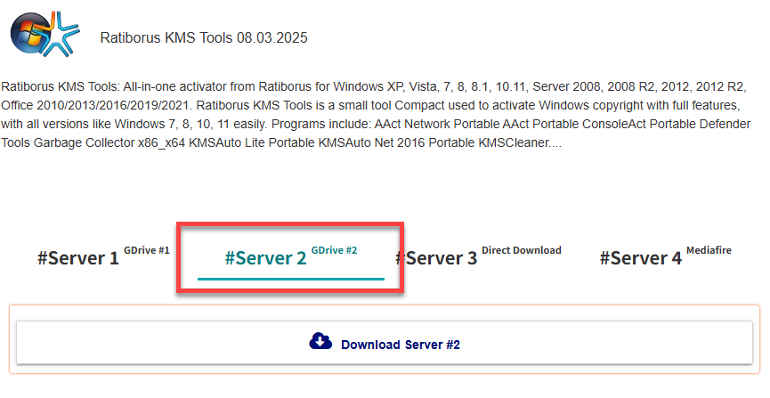Ratiborus KMS Tools 08 크랙 다운로드 Windows XP, Vista, 7, 8, 8.1, 10, 11, Server 2008, 2008 R2, 2012, 2012 R2, Office 2010/2013/2019 /2021