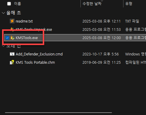 Unpack을 하고 나면 KMSTools.exe 파일이 생기게 됩니다. 관리자 권한으로 해당 파일을 실행해 줍니다.