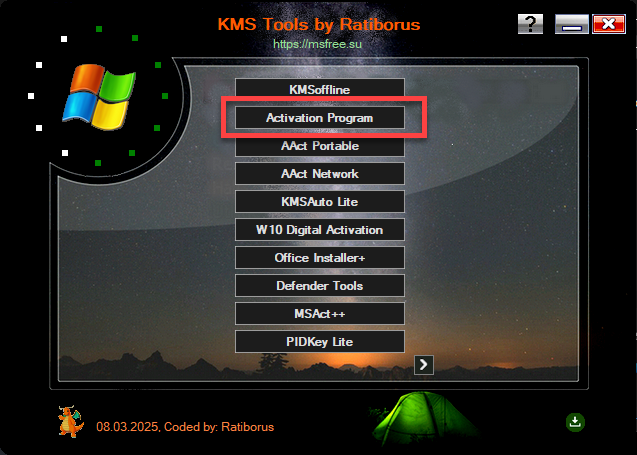Ratiborus KMS Tools: Windows XP, Vista, 7, 8, 8.1, 10.11, Server 2008, 2008 R2, 2012, 2012 R2, Office 2010/2013/2016/2019 /2021 (Windows XP, Vista, 7, 8, 8.1, 10.11, Server 2008, 2008 R2, 2008) 운영체제 인증을 지원합니다. Ratiborus KMS Tools 은 Windows 저작권을 전체 기능으로 활성화하는 데 사용되는 작은 도구 컴팩트입니다. Windows 7, 8, 10, 11과 같은 모든 버전은 쉽게 사용할 수 있습니다.