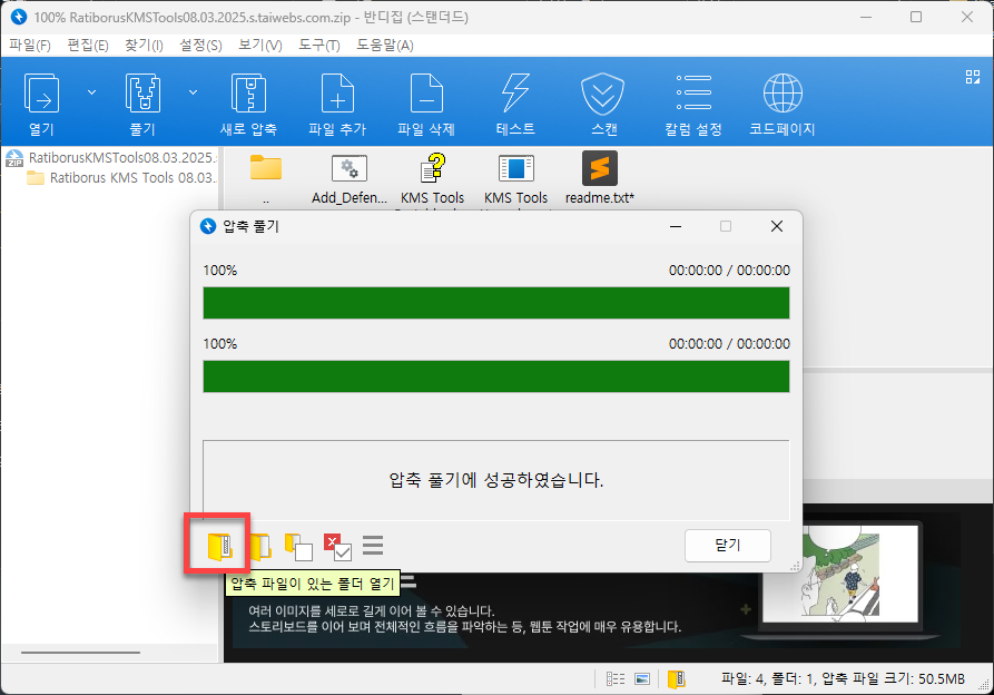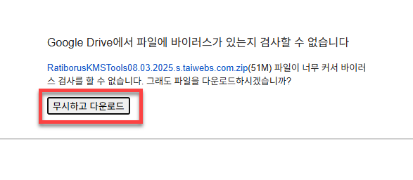 다운로드 된 RatiborusKMSTools zip 파일을 압축 해제 하시기 전에 윈도우 바이러스 검사 기능을 해제해 주셔야 합니다.