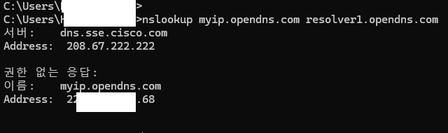 nslookup myip.opendns.com resolver1.opendns.com