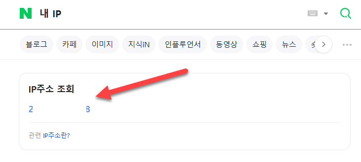 - 검색창에 “내 IP” 또는 “IP 확인” 입력