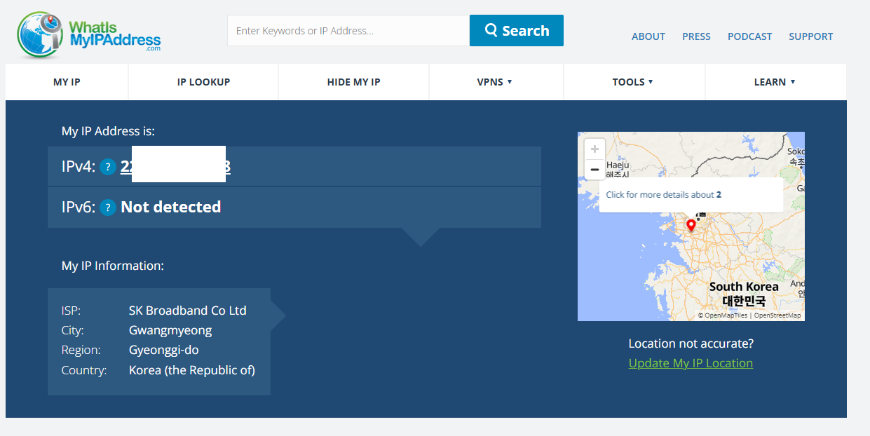 | whatismyipaddress.com | 상세한 위치 정보 제공 |