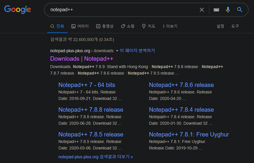 아니면 포털사이트에서 notepad++ 라고 검색하시면 쉽게 사이트가 나옵니다.