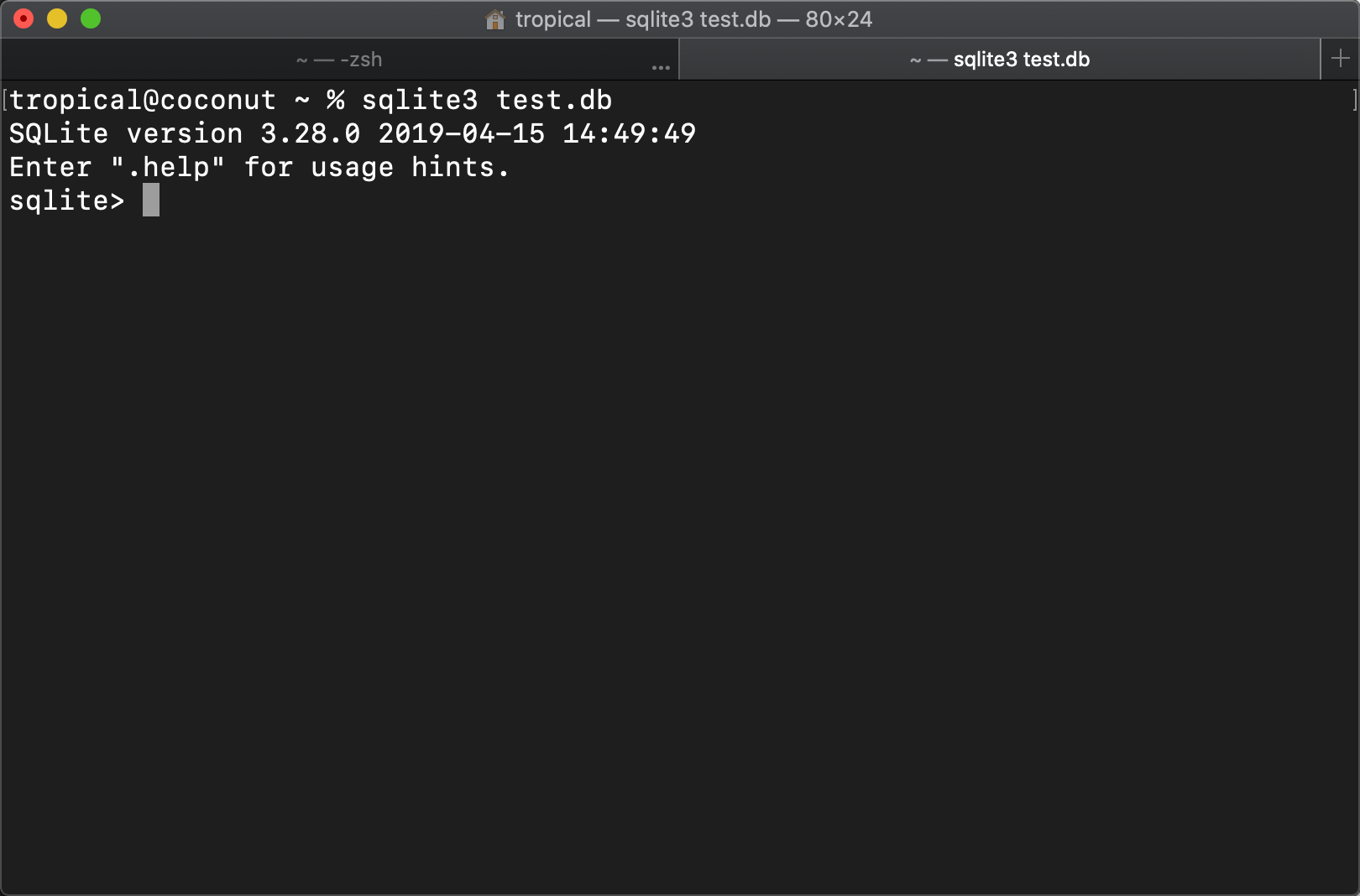 % sqlite3 test.db