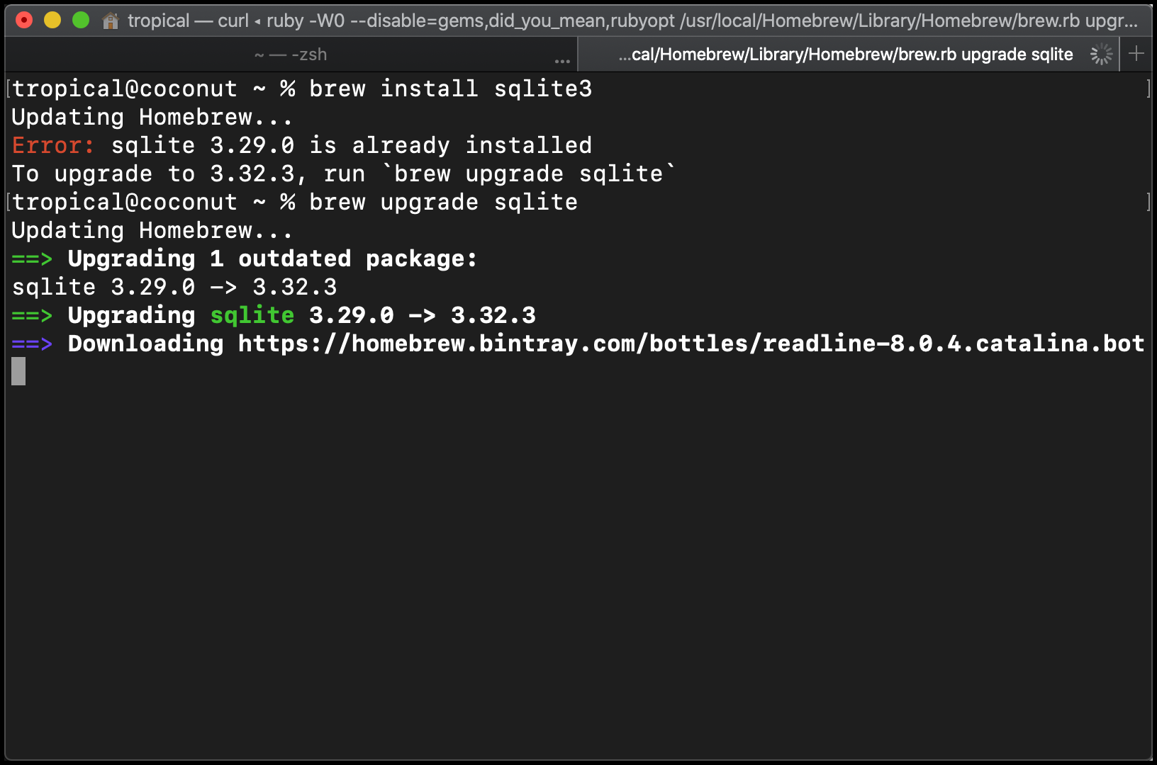 % brew upgrade sqlite