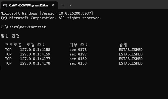 2단계: netstat 명령어 실행