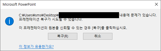 이 프레젠테이션의 원본을 신뢰할 수 있는 경우 [복구]를 클릭하십시오.