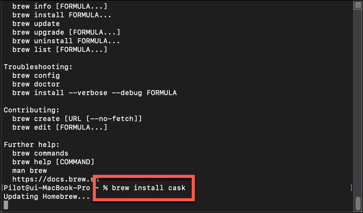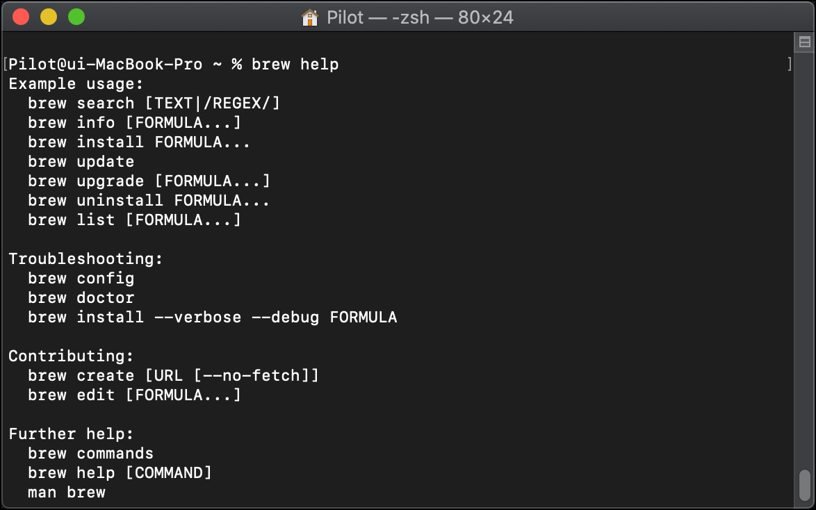 brew help 라고 명령어를 쳐보시면 Homebrew의 가이드를 보실 수 있어요