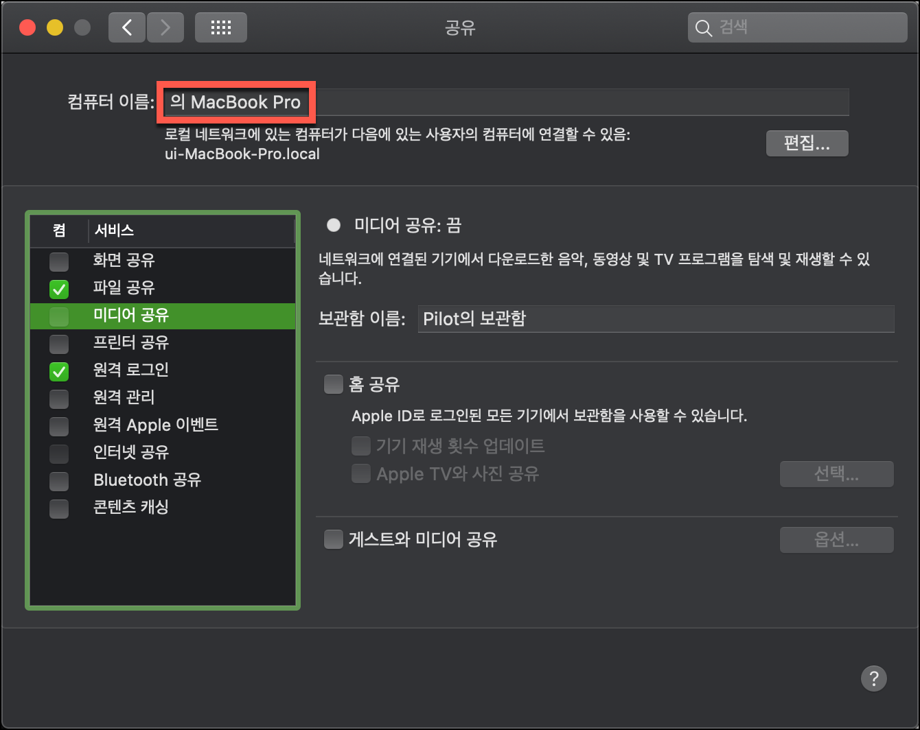 공유에서 위에쪽에 보시면 "컴퓨터 이름" 이라고 있는데