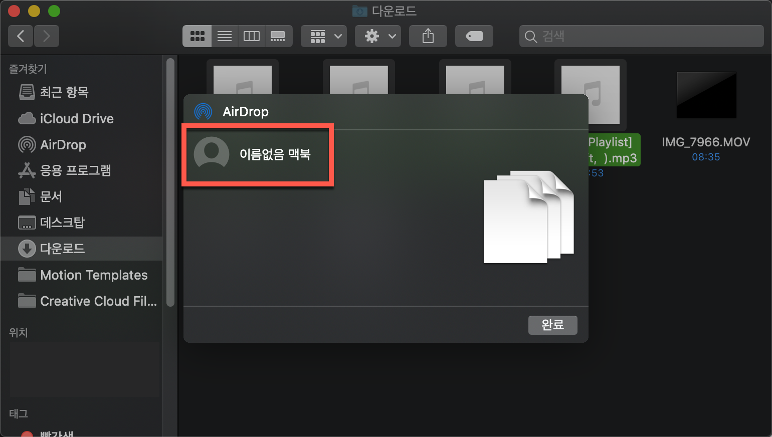AirDrop으로 다른 사람이 저한테 연결할 때 뜨는 이름도 저렇게 표시가 됩니다
