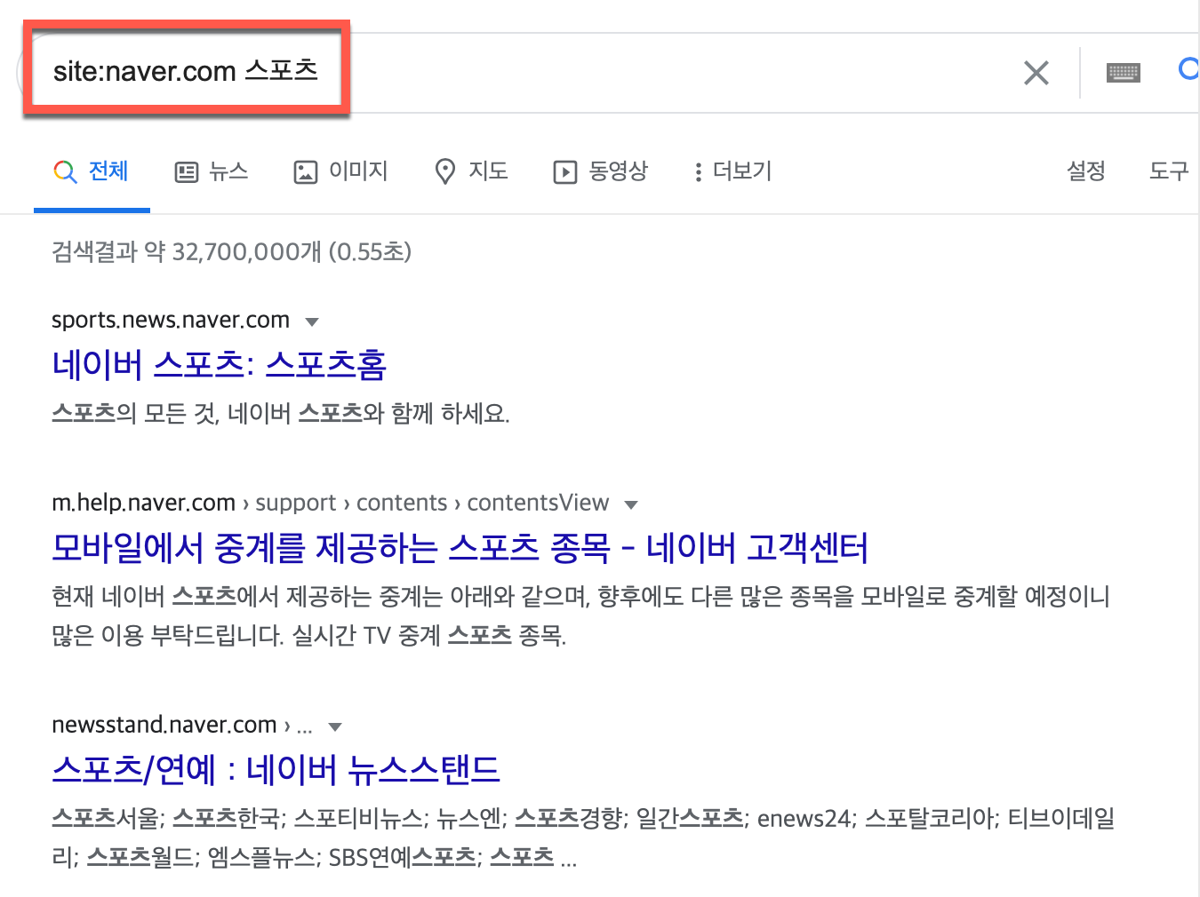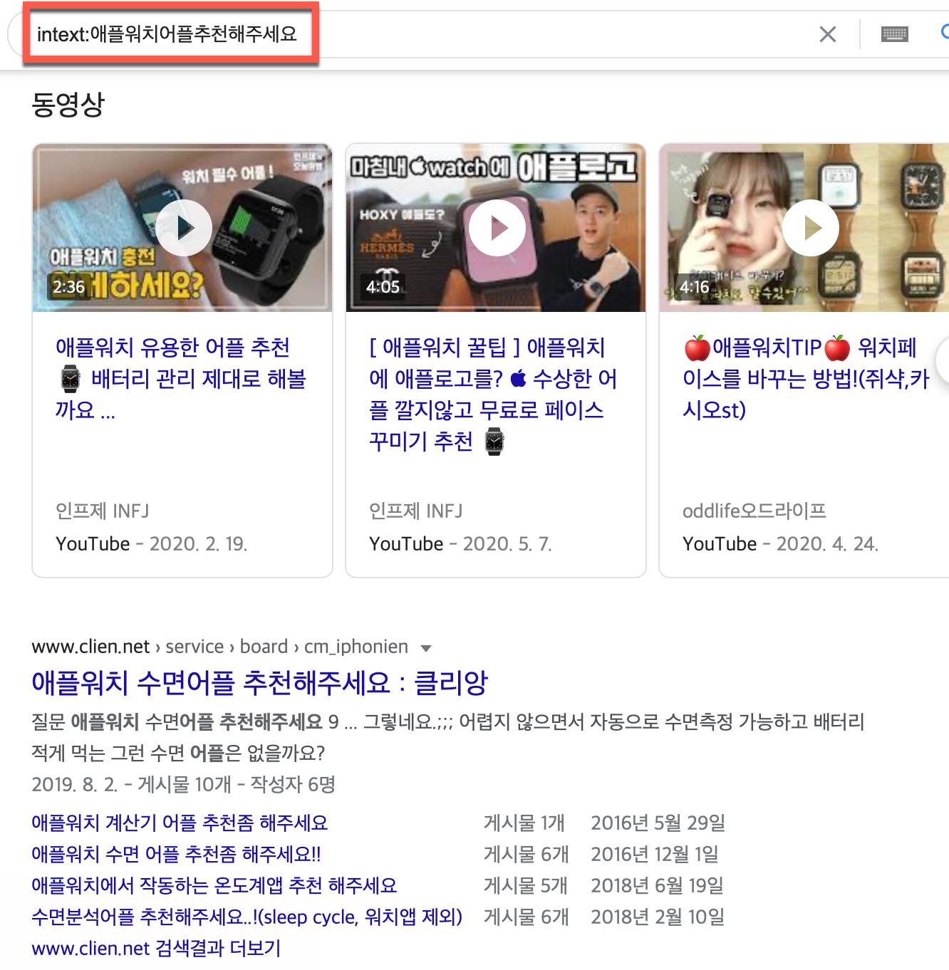 ex) site: apple. com / 애플사이트 안에 있는 키워드 검색